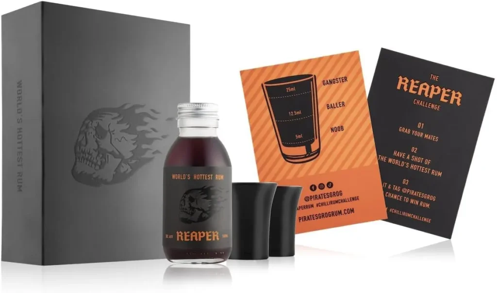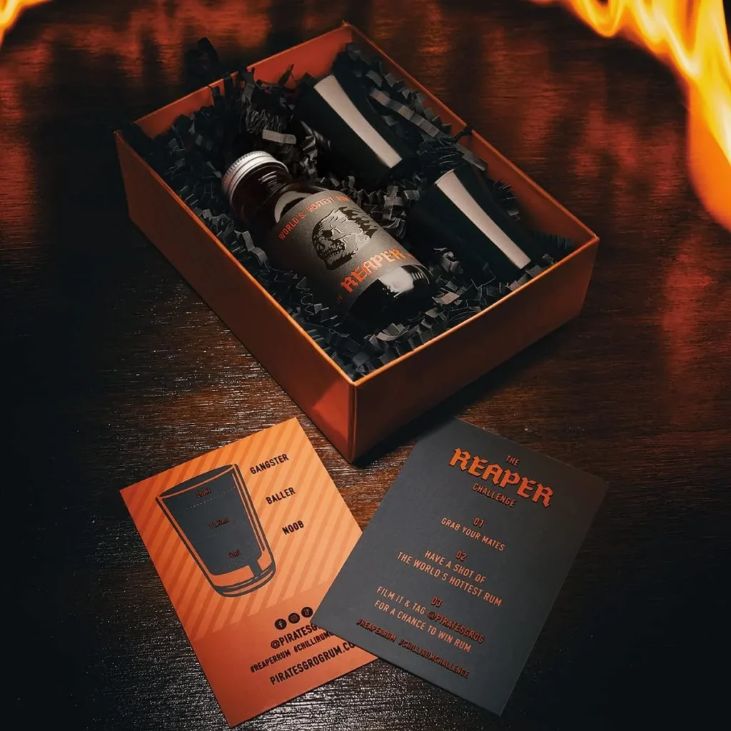 The Reaper Chilli Rum sits at 50% ABV and contains THREE of the planet’s hottest chilli peppers – Carolina Reaper, Naga Ghost Chilli and Trinidad Scorpion…