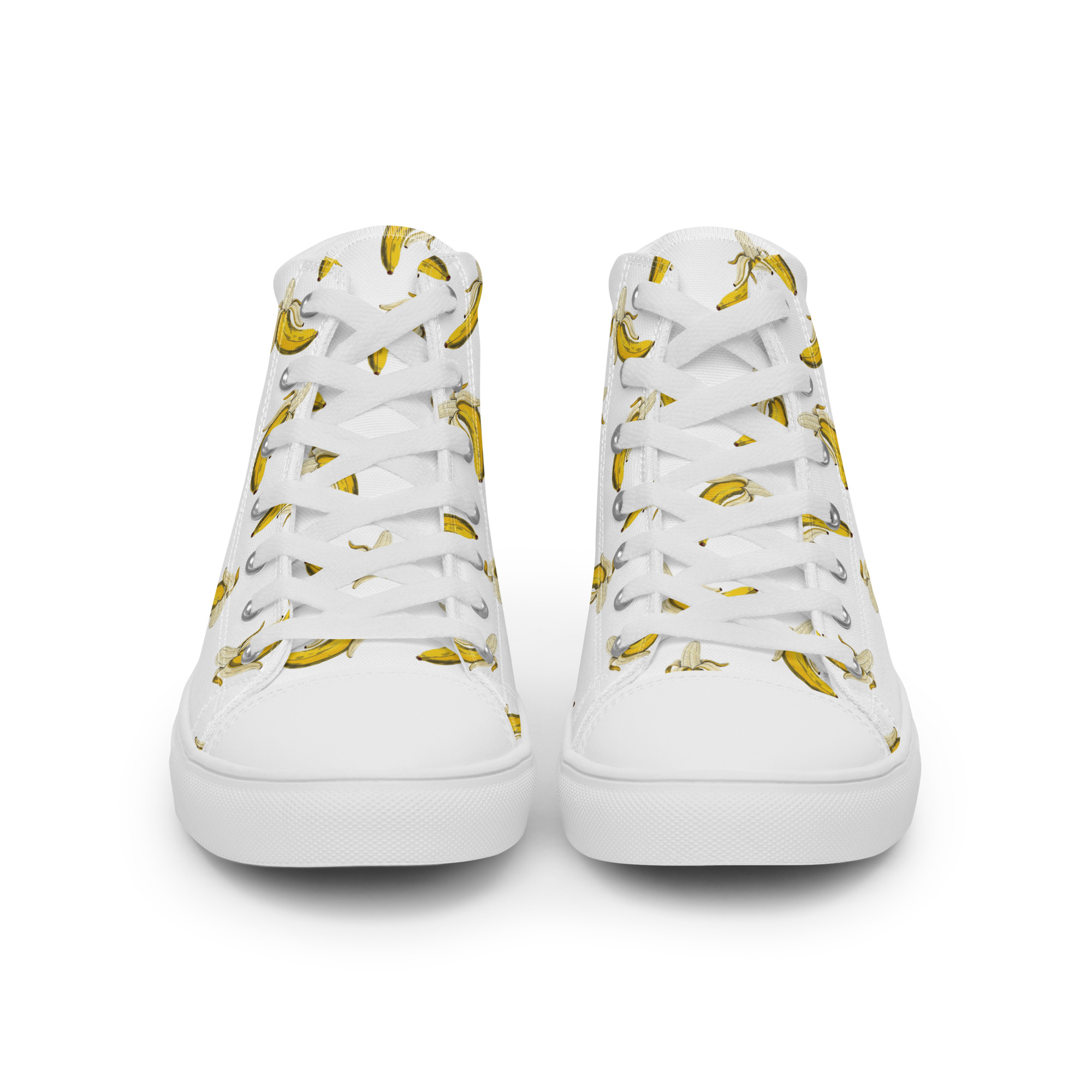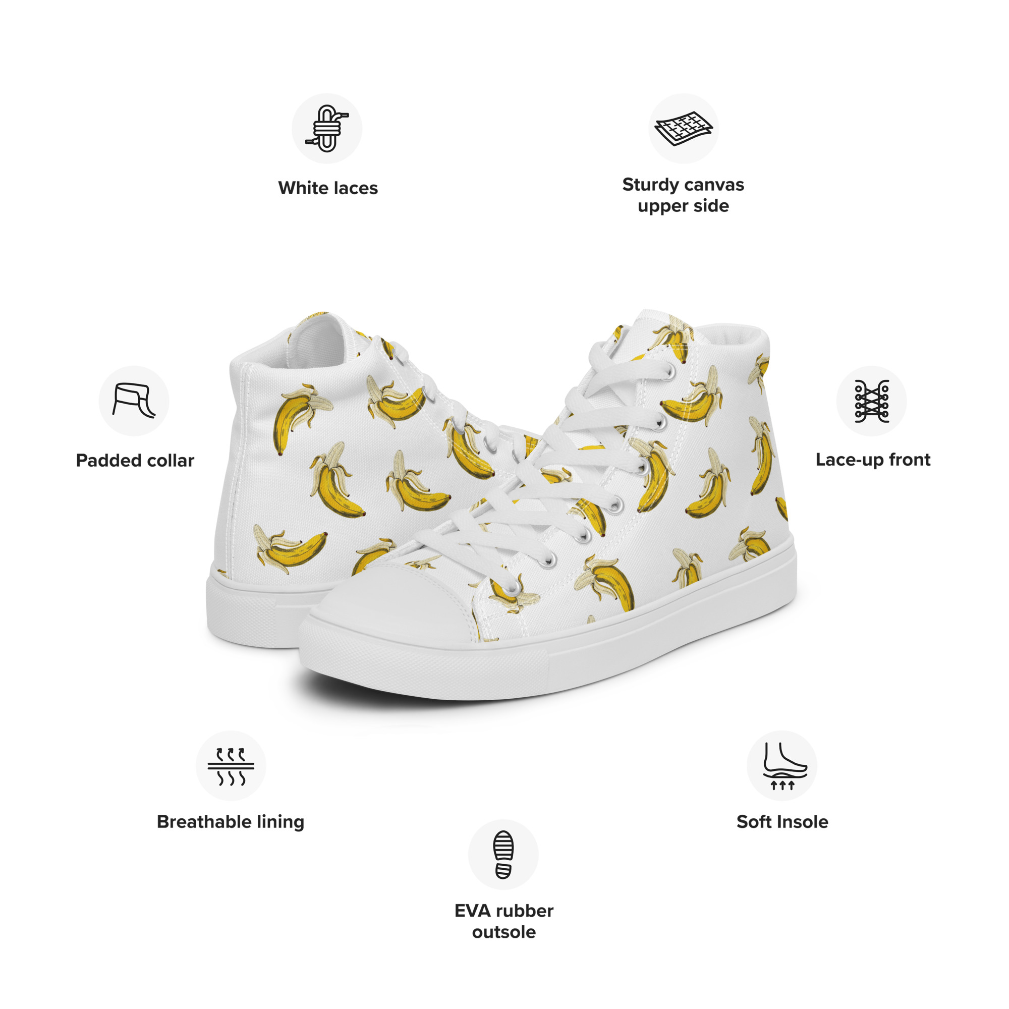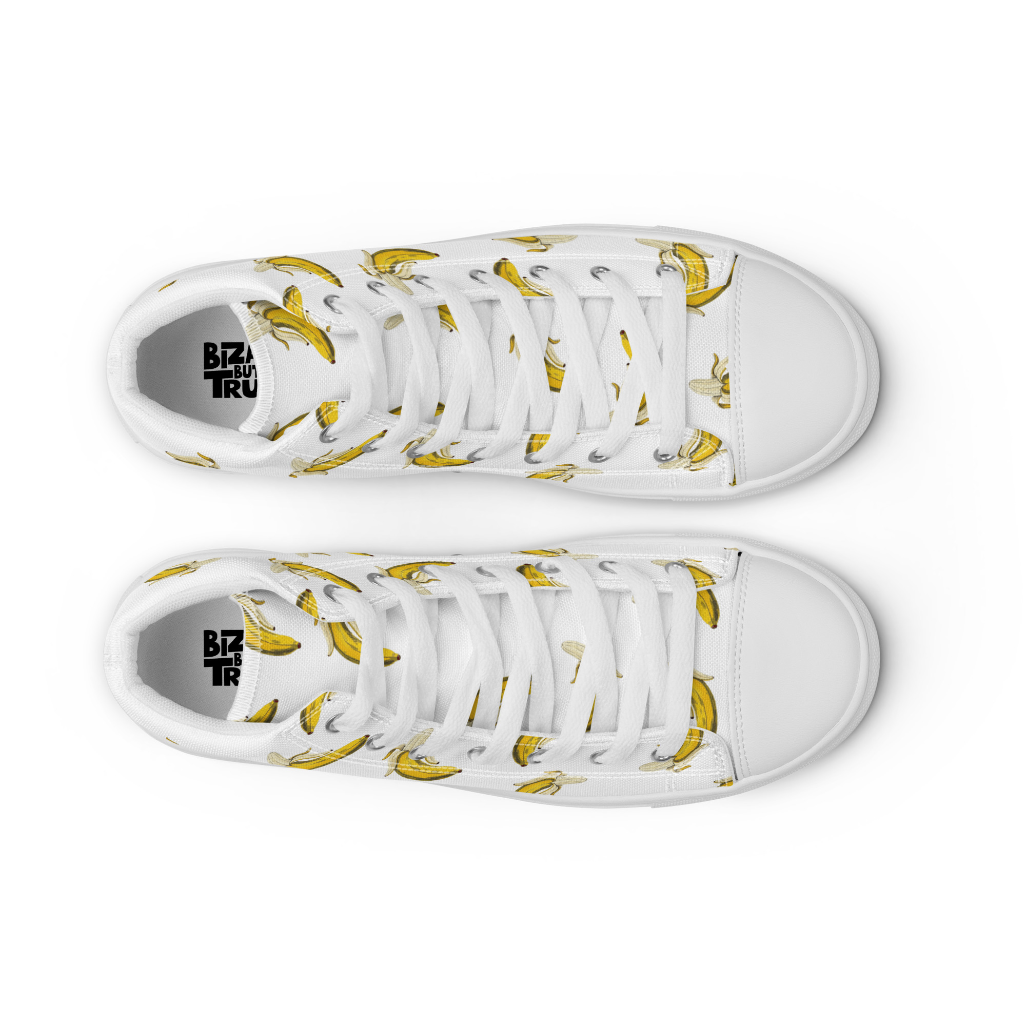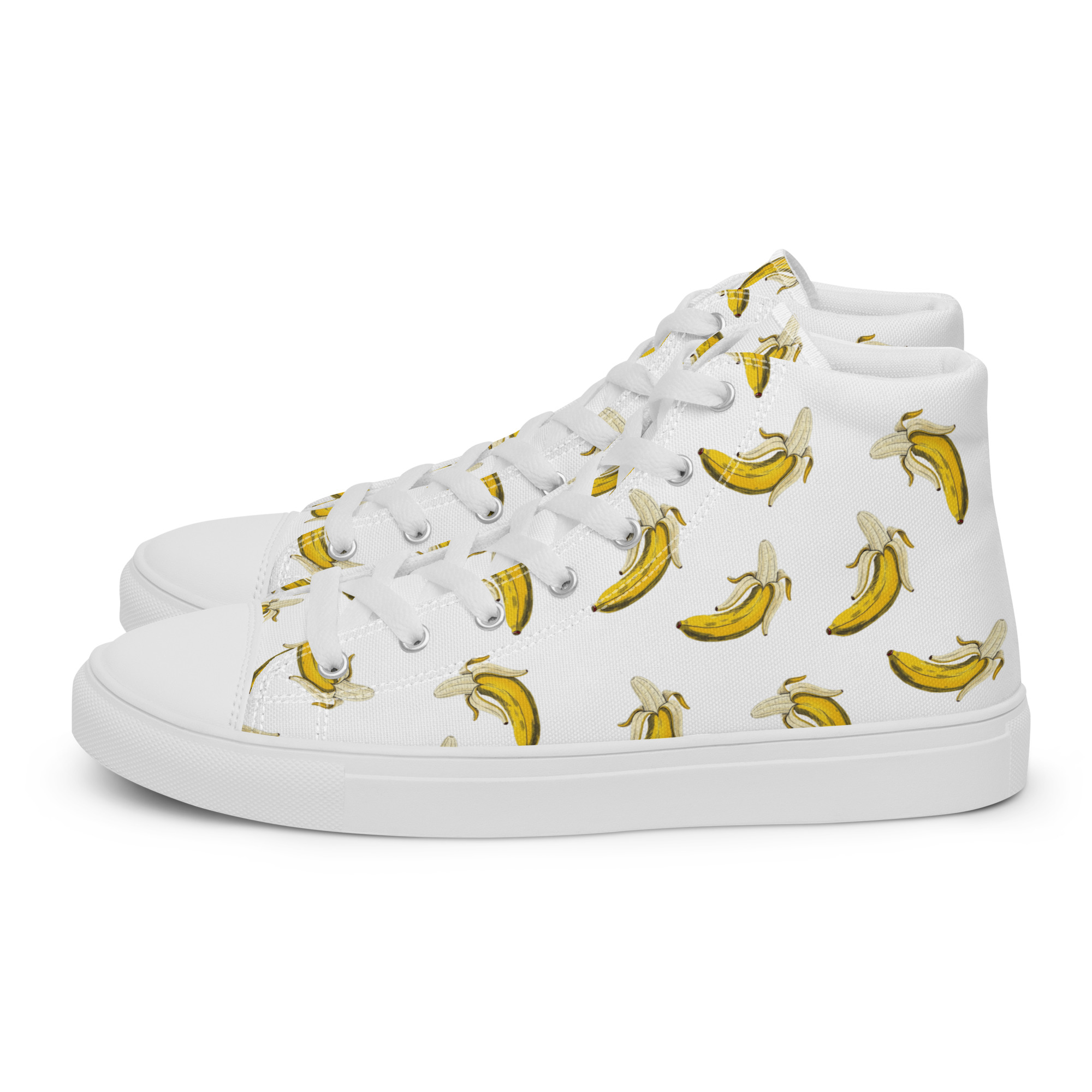 These canvas shoes gently ‘poke’ at the comparison. Wrapped in a bold banana print that doesn’t try to be subtle.