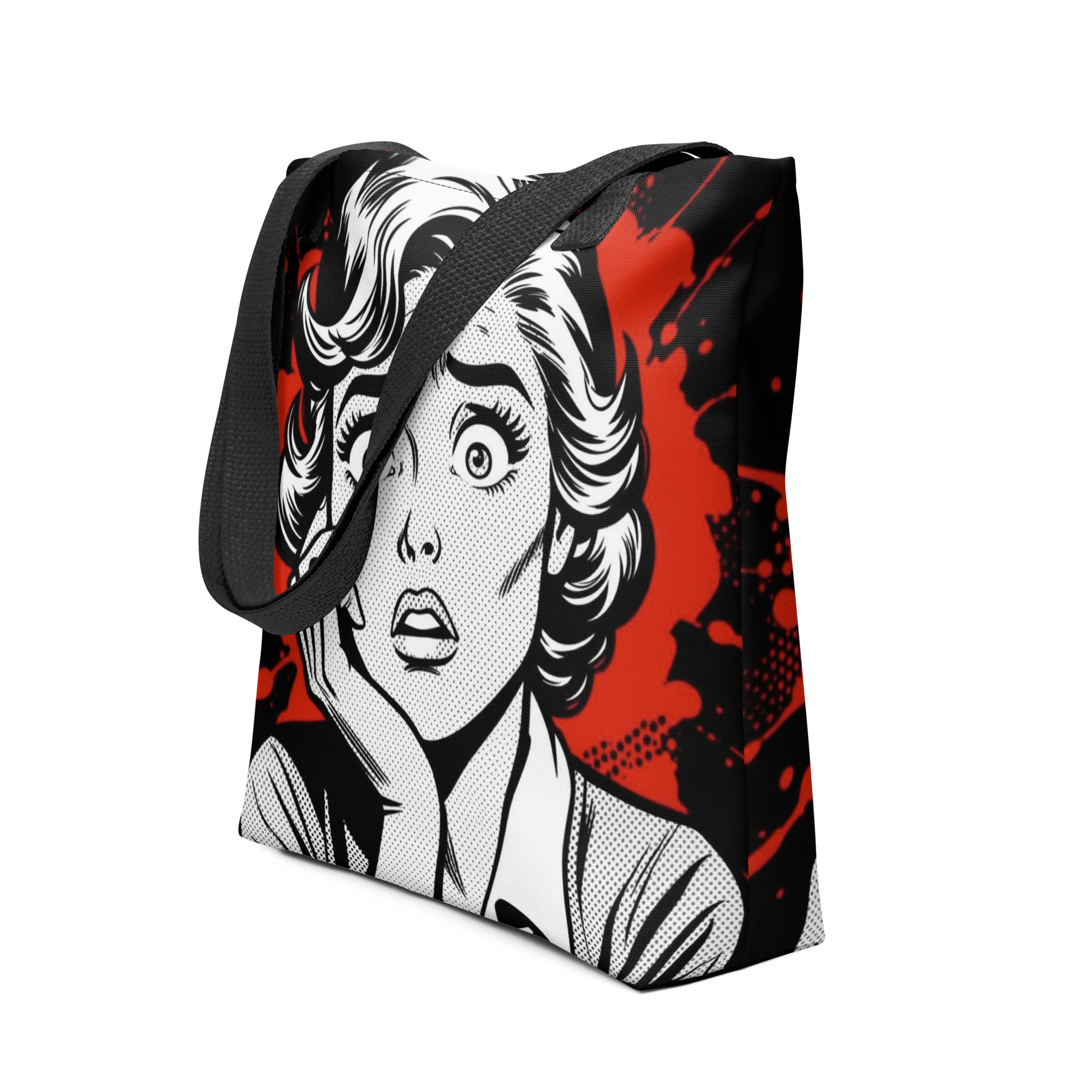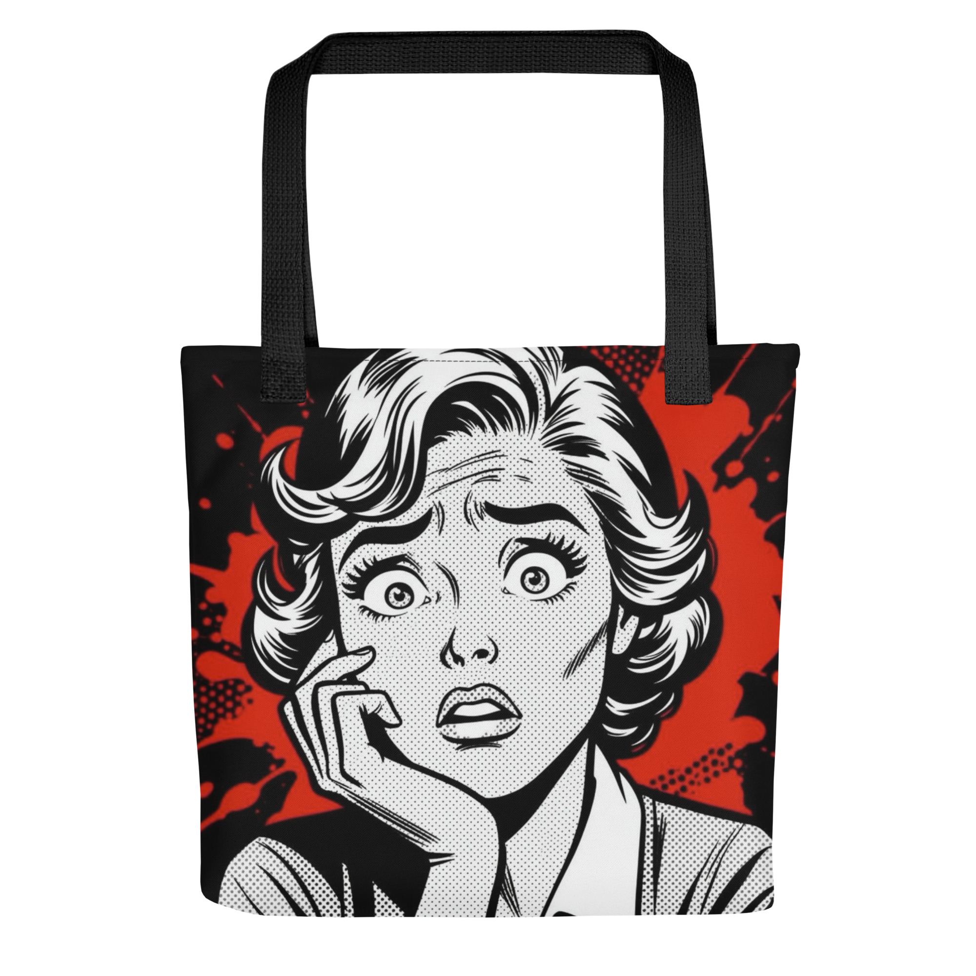This tote bag leans into that awkward truth in bold PopArt style – a woman, wide-eyed, caught between surprise & realisation. Equal parts science and scandal. Printed on durable fabric, it’s made for carrying, well, we’ll let you decide that!