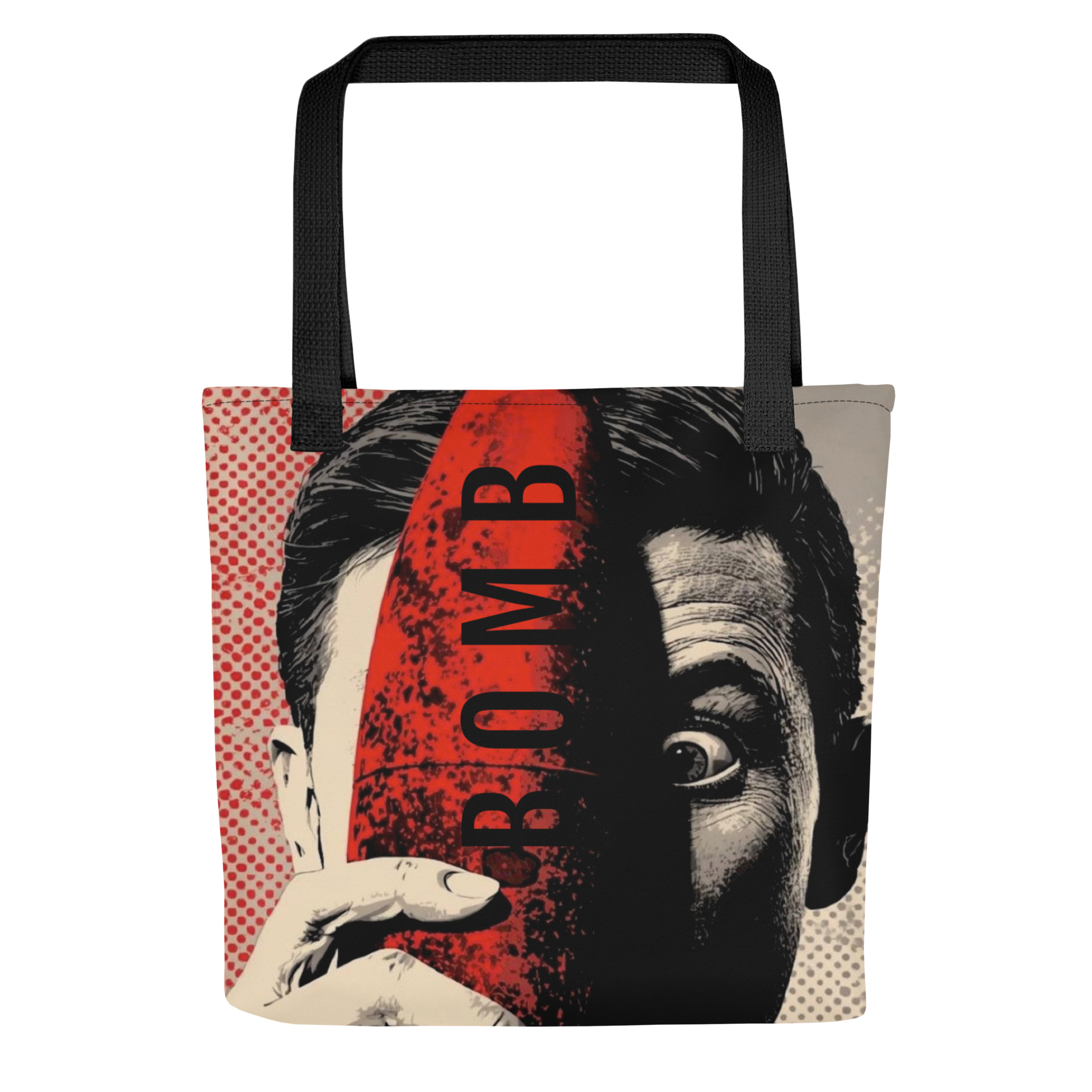 What followed involved evacuations, bomb disposal units & the very careful extraction of a device that, inconveniently, was still live. This tote bag captures explosive absurdity & danger in striking PopArt!