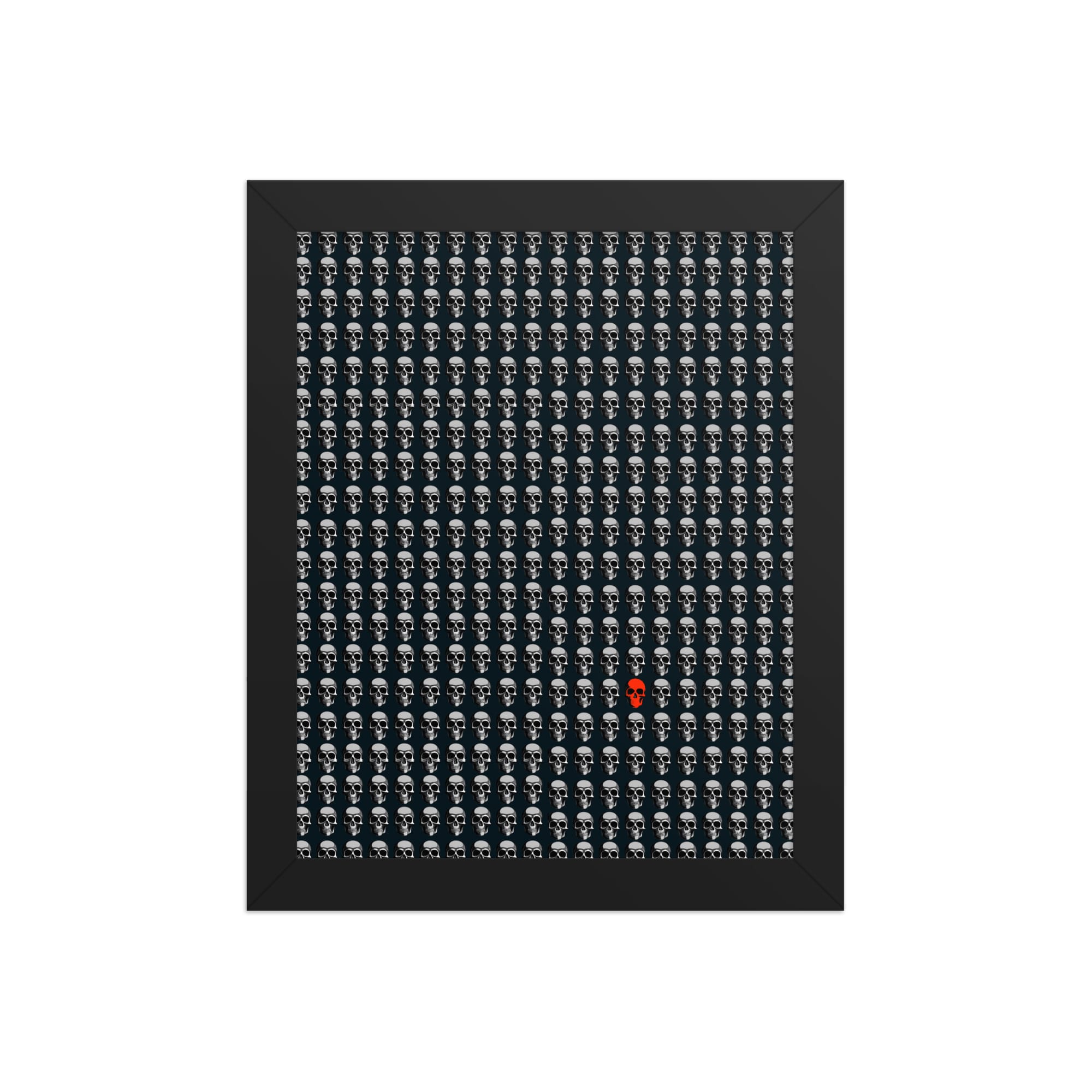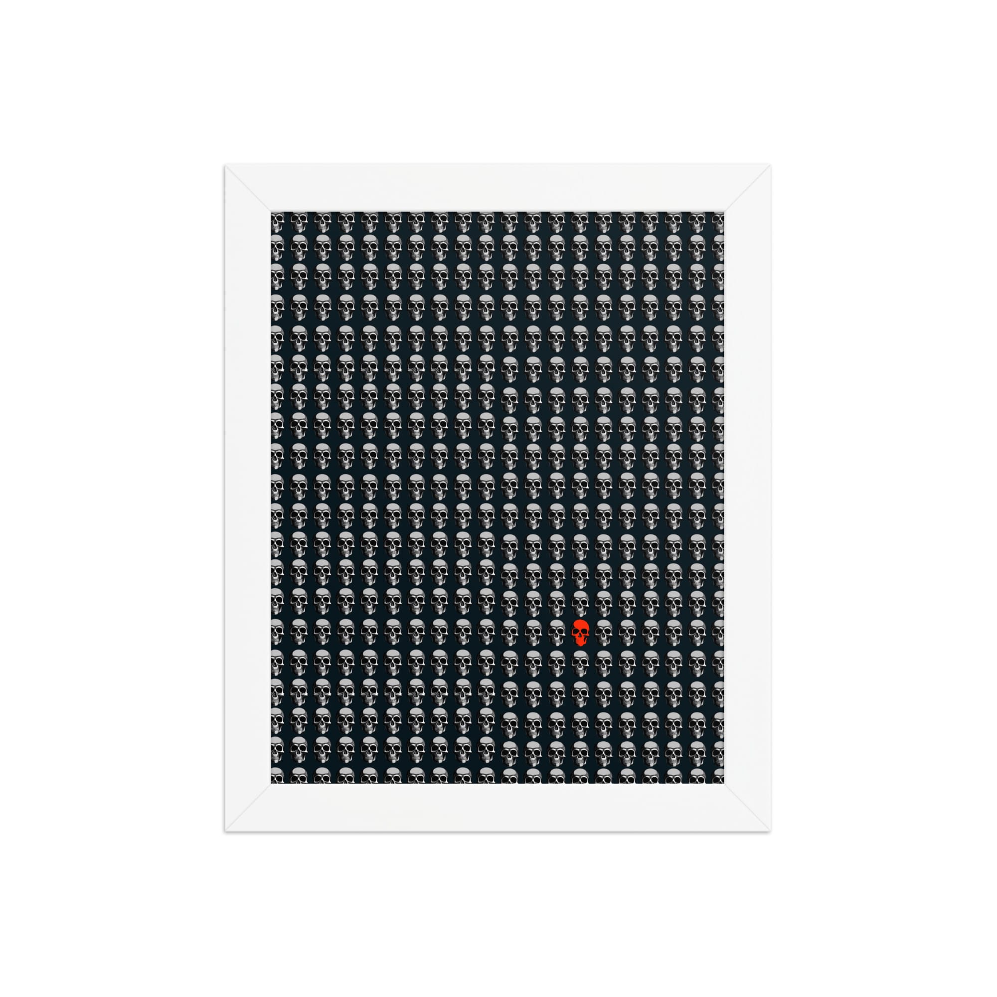 This striking black-and-white skull grid hides a single red outlier. A bold splash of colour in a sea of uniformity. Is it the rebel? The mistake? Or just the one telling the truth?